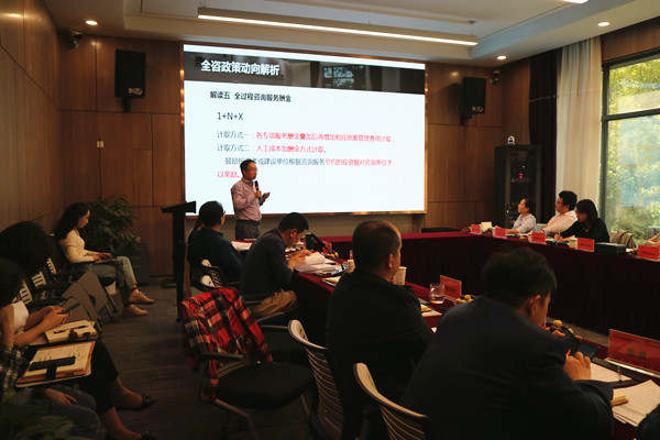 董事長王雁然圍繞“全過程咨詢研究與實務(wù)”的主題進(jìn)行了演講,從政策動向解析及市場前景預(yù)測、落地實戰(zhàn)解析、典型案例等三個方面內(nèi)容對全過程工程咨詢進(jìn)行了全面的介紹,分享了鼎正在全過程工程咨詢實踐中取得的業(yè)績成果。