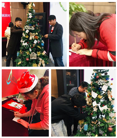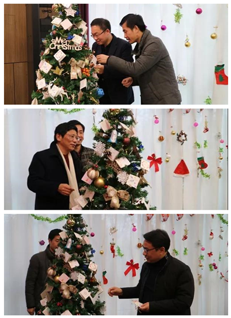 平安夜,行政人事部的同事們化身“圣誕老人”,貼心的為每一位同事準(zhǔn)備了平安果;由鼎正大家庭共同裝飾的圣誕樹掛滿了大家親手寫的祝??ㄆ瑸槭フQ節(jié)的到來更添一份濃濃的節(jié)日色彩。