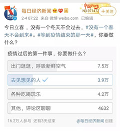今天,2020年2月14日,一個特殊的情人節(jié)!想從一個近期的網(wǎng)絡(luò)投票說起:“疫情過后的第一件事,你要做什么?”